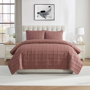 VCNY 3pc King Square Pinsonic Quilt Set Rose: Hypoallergenic Modern Geometric Microfiber Bedding with 2 Shams