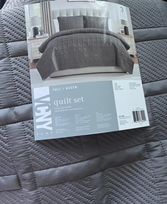 Available in a variety of solid colors to complement your décor, the VCNY Home Square Pinsonic Textured Quilt Set features textured grid patterns that look as good as they feel. This lightweight quilt set is comfortable for all seasons and is made with soft and durable microfiber fabric. Each 3-piece quilt set includes a quilt and matching pillow shams for a perfectly coordinated look. You can keep this VCNY Home bed set looking fresh by machine washing it in cold water with similar colors and drying it on a low setting as needed.