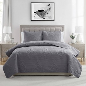 VCNY 3pc Solomun Pinsonic Quilt Set Gray