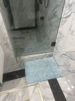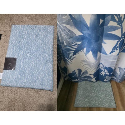 [This review was collected as part of a promotion.] The color is nice as and it looks more marble than blue but it goes well with my bathroom colors. I prefer the 20” by 35” mats but although this mat is small it feels super soft.