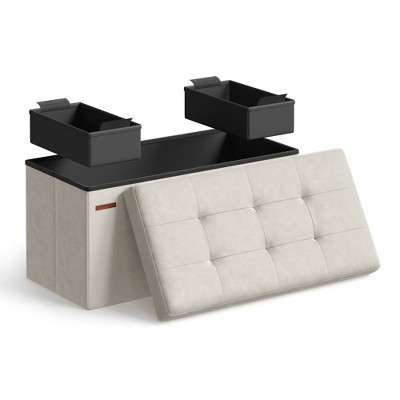 VECELO 18/30/43" Storage Ottoman Wooden Bench with Wicker-Knot Cushions Toy Box Organizer with Safety Hinges Charcoal Gray/White
