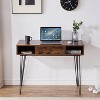 The metal hairpin legs and wood top are the perfect combination to create an industrial, modern piece. Four hairpin legs shape the concise and fashionable look. Three classic colors easily match your home decoration. Spacious tabletop without shelves and drawers hindrance, provides a comfortable room for working, drawing or reading. With 2 open drawers and 1 enclosed drawer, has ample space to store and organize things neatly. The compact dimension of home office desk for your laptop, computer, lamp and books. Hairpin legs keep less contact with your floor and make you clean easily. Elegant and contemporary, this desk effortlessly complements any room decor. Elevate your home office, study, or bedroom today!