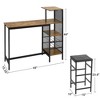 Elevate your dining experience with our stylish bar table set! The 3-piece dining table set includes 1 rectangular table and 2 matching bar stools. The spacious tabletop has a special cup holder, which can be used to place cleaned cups, which is also very convenient for daily use. There is a three-layer storage rack under the table can amplify your storage, the open shelf and wine rack for tableware, wine, and snacks. Moreover, the stool can be placed under the table when not in use, reducing the space occupied. The sturdy metal frame guarantees a stable structure for both the table and stools. Transform your home into a bistro haven with this multifunctional island table and savor joyous moments with your family!