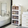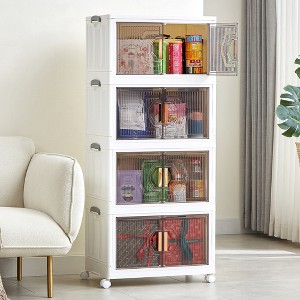 The stackable plastic storage bin is a versatile and space-saving solution for organizing your home. Each stackable storage bin has a large capacity, perfect for categorizing and storing various items such as snacks, toys, books, and household essentials, providing plenty of space for everyday use. Our foldable storage cabinet features a collapsible design, easy mobility with four wheels, and two opening methods with a top cover and front doors. Perfect for storing clothes, bedding, toys. Made of reliable PP material, these storage boxes are lightweight and durable.and more, this durable bin ensures secure, dust-free storage with transparent visibility for efficient organization, can be easily stored under the bed or sofa. Our modern floor storage box is easy to install and requires no tools, making it a great addition to enhance your home's style.