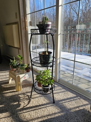 This metal plant stand is just perfect for my apartment and patio. As soon as the snow stops it's going outside. I'm a 68 year old grandma who put this stand together myself. I just love it. Great price for a sturdy stand.