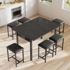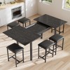 VECELO 7-Piece Dining Table Set with 6 Stools, 63" Expandable Kitchen Table with Metal Frame, Small Spaces, Black