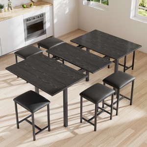 - DINING TABLE & CHAIRS SET: The set includes 1 extendable dining table and 6 matching stools in the same style as the table, you can have a unified dining table and stools set without any additional accessories, creating a neat, comfortable and beautiful dining space.