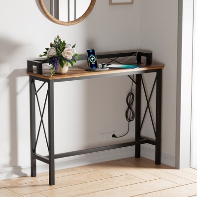 VECELO 70.9 Inch Couch Side & Console Table with 2 Outlets, 2 USB Ports and Extra Long 9.8 Feet Power Code, Sofa Behind, Gray