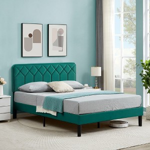 Product Name: VECELO Bed Frame Premium Upholstered Platform with Height Adjustable Headboard, Bed Frame Drak Green Queen Bed