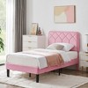 Product Name: VECELO Bed Frame Premium Upholstered Platform with Height Adjustable Headboard, Bed Frame Pink Twin Bed