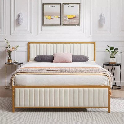 Product Name: VECELO Beige Upholstered Bed Wood and Metal Frame Full Platform Bed