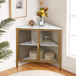 - ELEGANT MARBLE-TOP DESIGN – ✨ Featuring a water-resistant white marble finish tabletop and matte gold frame, this corner cabinet with doors adds a touch of modern luxury to your living room, kitchen, or entryway.