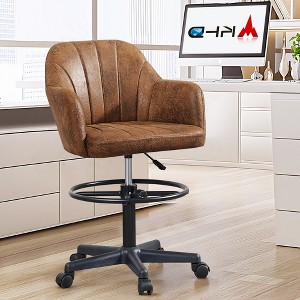 Product Name: VECELO Drafting Chair with Adjustable Height PU Swivel Stool with Lumbar Support, Brown