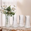 - BEAUTIFUL DESIGN: This glass vase features a unique flared silhouette with a clear body and a textured design that blends easily with any decor. This vase can be used on its own or filled with flowers or greenery, making it a beautiful addition to a tabletop or shelf.