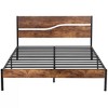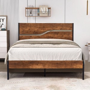 Product Name: VECELO Full Metal Platform Bed Frame with Brown Wooden Headboard