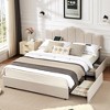 VECELO Queen/Full Size Platform Bed Frame with Type-C & USB Charging Stations and 4 Storage Drawers, Upholstered Adjustable Headboard, Beige