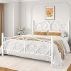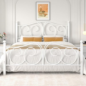 Transform your bedroom or spare room with this metal platform bed with an artistic headboard and footboard. This bed frame adopts a Victorian-style, and a perfect symmetrical curve line design, adds a touch of charm and sophistication to your sleep space. Built from solid metal, it supports up to 650 pounds and ensures a quiet, stable sleep with noise-reducing slats. Elevated 12.6 inches, it offers ample under-bed storage space, giving you a neat and clean home. The metal bed slats replace the spring box, and the installation is simple and convenient. This modern metal bed frame is delicately chic and the design is well made. It is the best choice for your bedroom. Double curve line headboard design could easily fit in a variety of decoration styles. This modern platform bed will undoubtedly be an eye-catching statement in any bedroom.