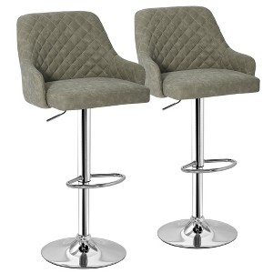 Elevate your seating experience with this set of 2 Adjustable Bar Stools, designed for both style and comfort. These counter height bar stools feature a 360° swivel seat and adjustable height, allowing you to customize your seating to suit various environments, from kitchen counters to high-top tables. The seats of these kitchen island stools are generously padded with high-density foam and covered in premium PU leather, providing exceptional comfort and durability. With an oversized design and a sturdy base, each of these tall bar stools supports up to 330 pounds, making them perfect for any setting. The sleek, modern design of these contemporary bar stools seamlessly blends with any décor, while the easy assembly process ensures you can start enjoying your new bar chairs quickly and effortlessly. Whether you're using them as kitchen counter chairs for your morning coffee or as pub stools for sharing a glass of wine with friends, these versatile bar stools offer the perfect combination of style, functionality, and comfort for your home bar or kitchen island.