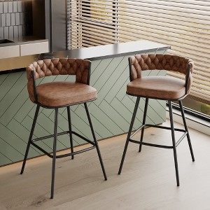 Product Name: VECELO Modern PU Leather Braided Bar Stools Set of 2, Counter Height Kitchen Island Stools, Upholstered Bar Chairs with Back Support, Brown