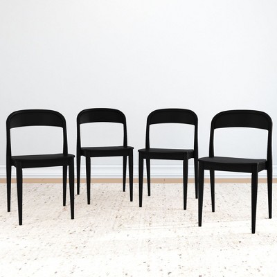 VECELO Plastic Stackable Dining Chairs Set of 4, Modern Kitchen Chairs with Wide Seat & Curved Back for Indoor or Outdoor, No Assembly