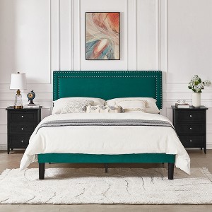 - ELEGANT VELVET UPHOLSTERED BED FRAME 🛋️ - Soft velvet fabric with chic nailhead trim creates a luxurious velvet platform bed and modern centerpiece for your bedroom décor. Perfect as a queen bed frame with headboard or stylish full bed frame.