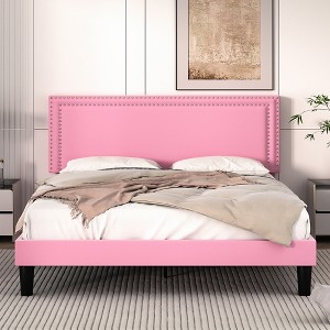 Product Name: VECELO Queen Size Platform Bed Frame with Height Adjustable Upholstered Headboard, Pink