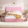 Product Name: VECELO Queen Size Upholstered Bed Frame with 4 Drawers and Adjustable Headboard, Pink