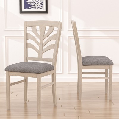 VECELO Rustic Wooden Dining Chairs Set of 2, Rubber Wood Kitchen Chairs with Padded Seat & Elegant Hollowed Backrest, Gray