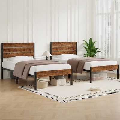 Product Name: VECELO Twin Size Bed Frame Set of 2 with Headboard and Footboard, White
