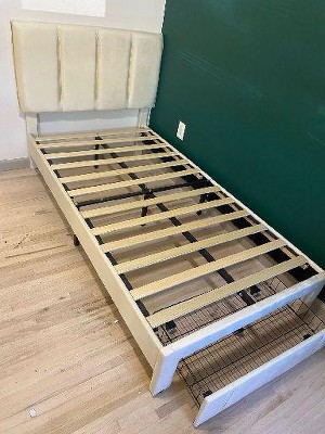 Product Name: VECELO Twin Size Upholstered Bed Frame with Storage Drawers and Adjustable Velvet Headboard, Beige