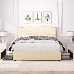 Product Name: VECELO Upholstered Bed Frame Full Size Platform Bed Frame with Adjustable Headboard and Storage Drawers Beige