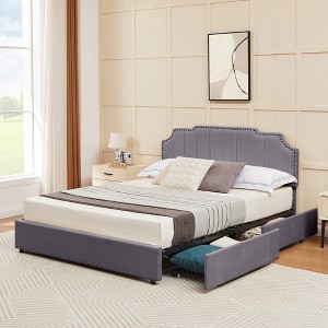 Product Name: VECELO Upholstered Bed Frame Queen Platform Bed Frame with 4 Storage Drawers & Adjustable Headboard, Gray