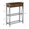 Product Name: VECELO Vintage Console Side Table with Drawers, Sofa Table with Rectangle Shelves, X-Frame Design, Brown