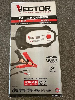 Vector® 2-Amp Automatic Battery Charger/Maintainer with 6-Volt/12-Volt Selector, VECBC2 in White