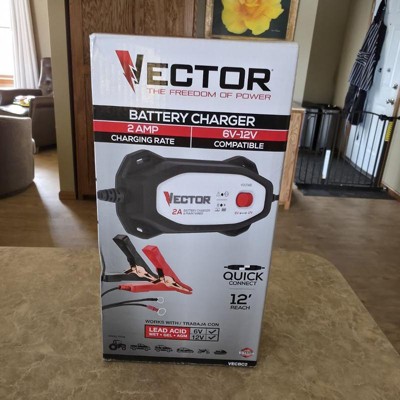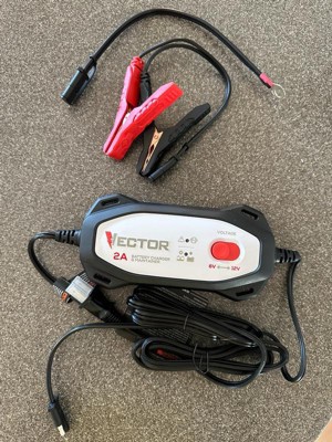 [This review was collected as part of a promotion.] The Vector 2 amp charger is pretty nice and works as expected so far. We leave it on our 1962 Catalina to make sure it starts since we don’t drive it very often. Nice long cord, easy connections. My only concern is the plastic housing; time will tell how that lasts. Nice product that works well for its purpose.