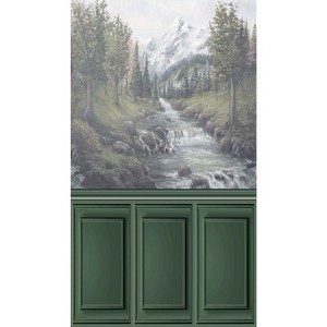 Cascading Waters is a breathtaking mural that brings the serenity of a mountain landscape into your space. Featuring a rushing alpine stream, towering evergreens, and majestic snow-capped peaks, this design creates a sense of depth and tranquility. The finely detailed painting captures the natural beauty of a secluded retreat, making it a stunning focal point for any room. Printed on a roll of 3 continuously printed panels, this mural seamlessly extends side to side, allowing for an uninterrupted panoramic effect when additional rolls are purchased. A unique feature of Cascading Waters is the elegant green chair rail, which is printed directly as part of the mural, adding a refined architectural touch without the need for additional molding or installation. Crafted on a premium, eco-friendly, open-faced non-woven material, this mural showcases a rich matte finish that enhances the depth and artistry of the design.