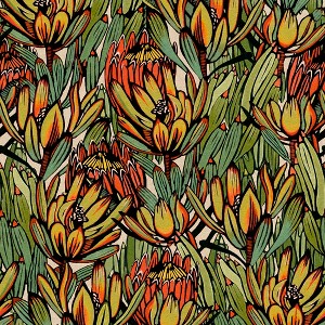 Our Copacabana Wallpaper is a bold, nature-inspired statement that brings the vibrant beauty of tropical flora into your space. Featuring lush, stylized protea blooms and exotic foliage, this design is rich in movement and detail, evoking the spirit of a botanical paradise. The intricate hand-drawn elements and striking color palette create a dynamic, layered effect, adding depth and character to any wall. Printed on a premium open-faced non-woven material, Copacabana delivers a luxurious designer matte finish that enhances the organic aesthetic of the artwork. The high-quality backing ensures an effortless installation with a seamless strip-to-strip match, while its ultra-removable properties allow for easy removal in full strips within minutes—perfect for a quick refresh. Whether used as an accent wall or to envelop an entire room, this wallpaper transforms interiors into lush, tropical retreats with a bold yet sophisticated edge. Washable surface for easy maintenancePrinted with water-based inks Easy paste-the-wall application for perfect side-to-side match and seamless results Dry-removable in full strips for instant removal Requires medium to strong wallpaper paste