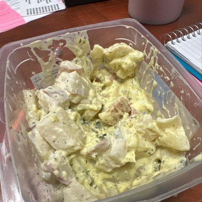 I’ve never written a review for potato salad, but I bought this less than an hour ago and am so disgusted with the flavor and texture of this, I felt compelled to. The potatoes are rock hard. The flavor must be trying to be bougie and unique and it is just overly garlicky. I wouldn’t eat this if it were free but such a small container for this price is robbery.