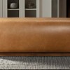 Vegan Tan Leather Upholstered Bench with Plush Cushioning and Handcrafted Elegance