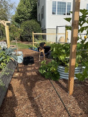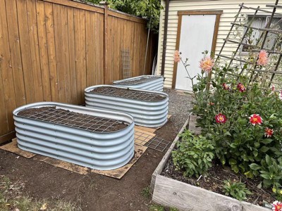 I love this new bed. I'll eventually switch my wooden beds over to match. It's the perfect height to keep the dog out of the garden.