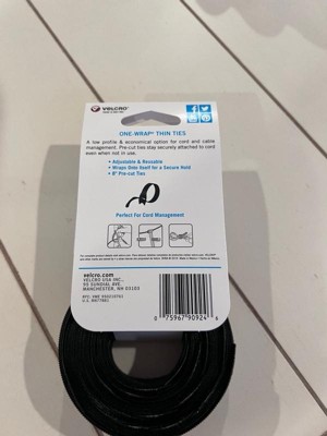 VELCRO® Brand ONE-WRAP® Thin Ties are a low profile and economical option for fastening wires and organizing cords. Strong and reusable, the ties are pre-sized to make appliance and electronics wire and cable management quick and easy. Slotted head design ensures the strap stays with the cord so it doesn't get lost.
