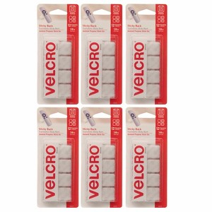 VELCRO® Sticky Back™ Square Fasteners, 7/8", White, 12 Per Pack, 6 Packs | VELCRO® Brand Sticky Back hook and loop fasteners are ideal for smooth surfaces and can be used for indoor or outdoor applications. VELCRO® Sticky Back Tape can be trimmed into strips of different lengths with a pair of household scissors. Each package contains 12 tabs. The square-shaped tabs measure 7/8". Sold as 6 packs for a total of 72 tabs.