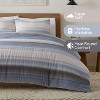 Soft serene stripes of blues and grays add a sense of tranquility to any space. Fabricated of 100% cotton sateen, the Vellux Alfie Comforter Set is made for cuddling into snug softness. Blue/Grey Striped Print