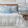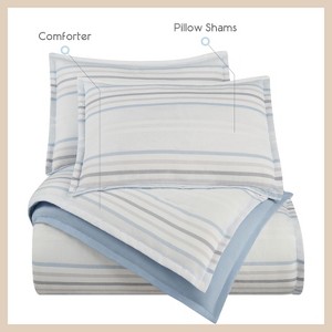 Classic tonal chenille stripes meet unforgettable softness in the Vellux Bergen Comforter Set. With 100% Cotton on the top and a soft-to-the-skin brushed fabric on the reverse, this comforter puts comfort above all. The subdued hues of blue, gray, and white add a sense of calm into your space. The solid blue reverse accents and elevates the design. Soft Blue/Soft Gray Chenille Stripe with Microfiber Reverse