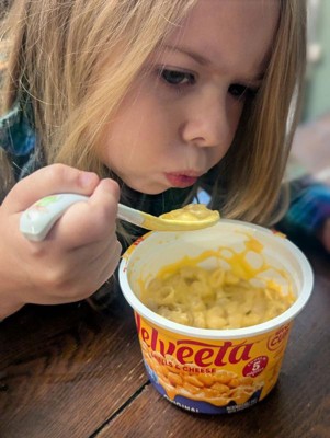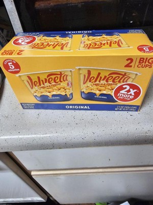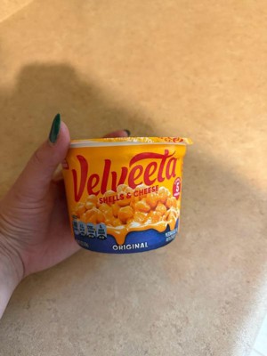 - VELVEETA SHELLS & CHEESE CUP: Four 2.39 oz cups of Velveeta Shells & Cheese Original Shell Pasta & Cheese Sauce made with real cheese