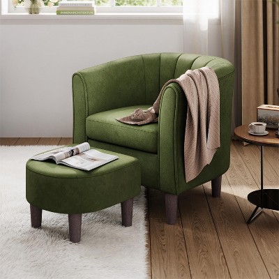 Velvet Accent Chair with Ottoman, Modern Barrel Chair Armchair for Living Room, Bedroom,Green