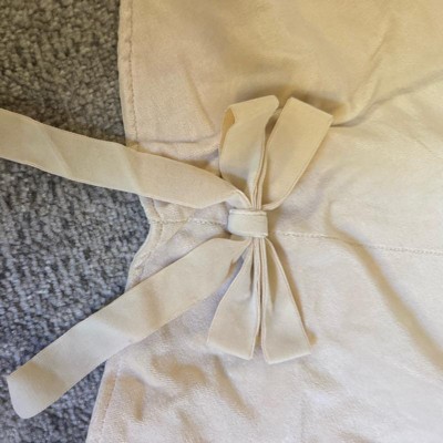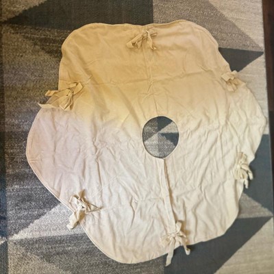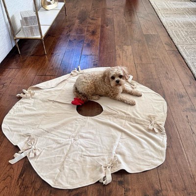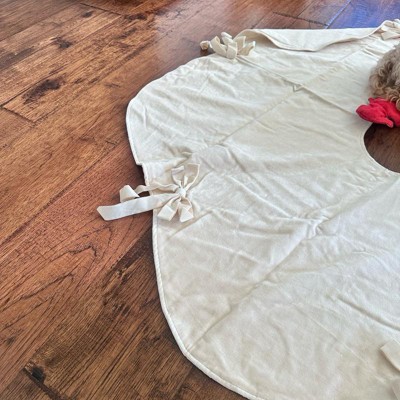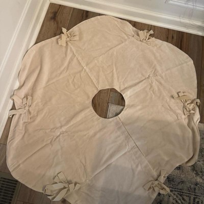[This review was collected as part of a promotion.] I love the soft cream color of this tree skirt because it blends well with the other Threshold “sour cream” and neutral tones I use around my house. The velvet bows are charming and elevate this mostly simple tree skirt. When it arrived it was very wrinkled but mostly smoothed out under the tree. But the bows require more effort — steaming or light ironing. Overall, it’s a lovely neutral festive holiday piece but expect to give it a little extra attention to make it look its best.
