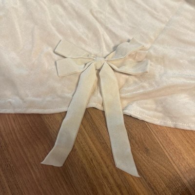 [This review was collected as part of a promotion.] I recently purchased the velvet bow tree skirt in the color cream, and I’m so excited to wrap this around my tree. The craftsmanship is excellent, with soft and plush velvet fabric that feels super luxurious and gives a cozy vibe. The cream color is elegant, complementing various Christmas themes and color schemes. The bow details add a charming touch without being overbearing, and the button closures feel very sturdy. Overall, a great touch to add to your tree!