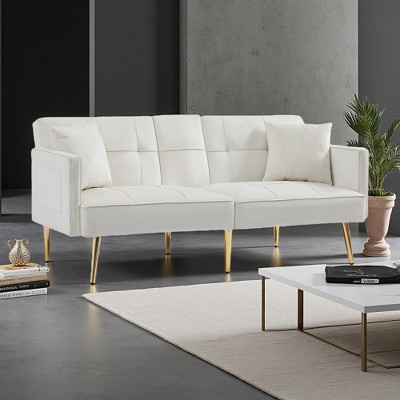 Velvet Futon Sofa Bed with Gold Legs & Cup Holders