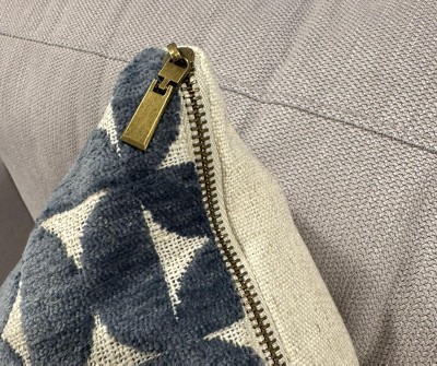I actually love the feel – touch and heft- and the look of this velvet Jacard pillow. Threshold is always of the highest quality! But I cannot abide with this chunky zipper – I don’t want that cold hard and sometimes dangerous material to be a part of my comfy couch situation.